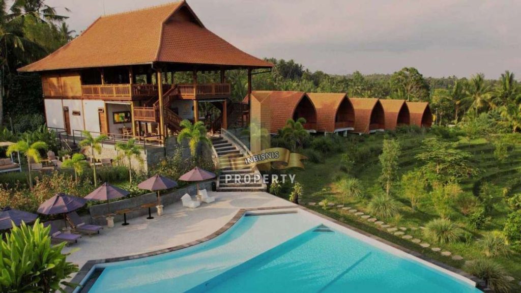This is an exceptional retreat, an extraordinary commercial property immersed in the tranquil embrace of Bali’s natural beauty and some of the most spectacular rice field vistas to be found. Spanning an expansive 11,300 square meters, this freehold estate presents a rare opportunity for entrepreneurs in the healing, yoga, or health industry to establish a sanctuary of serenity and well-being. Designed with meticulous attention to detail, this retreat embodies a harmonious fusion of traditional local architecture and contemporary aesthetics. Every aspect of this property has been